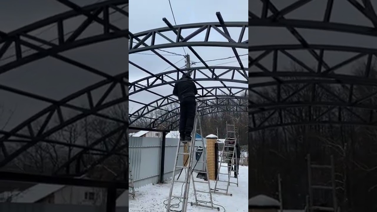 Навесы из поликарбоната Спецкаркас | Процесс сборки стропильных ферм